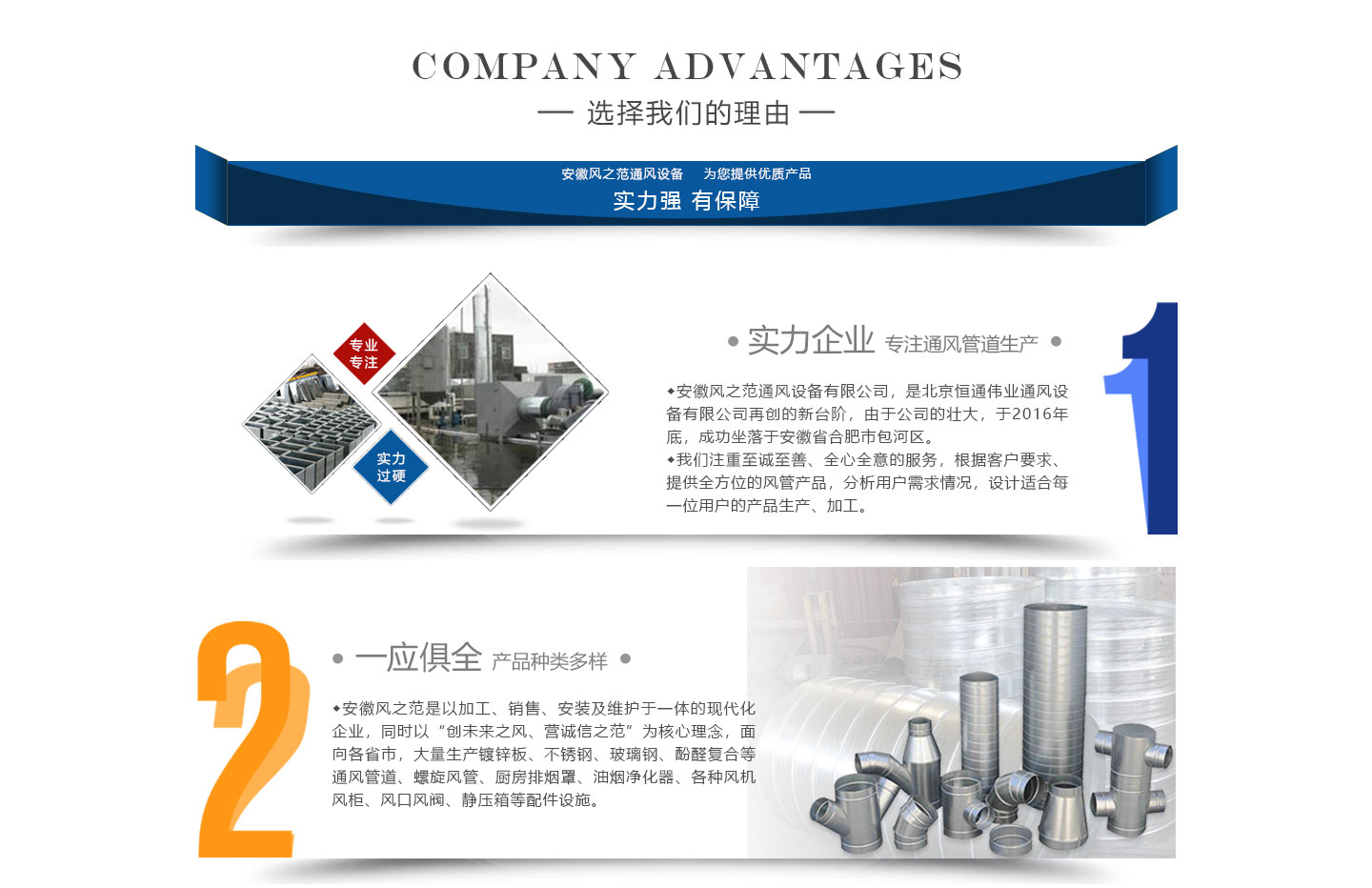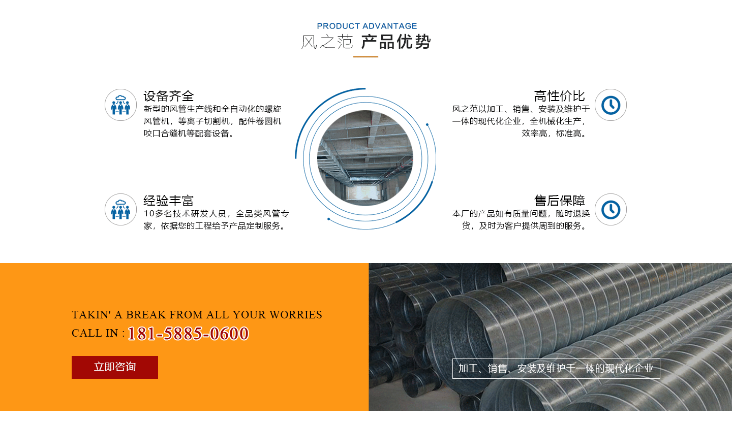 安徽風之范通風設備有限公司,是北京恒通偉業通風設備有限公司再創的新臺階,多年來,公司員工憑著“誠信敬業、團結拼搏、勇于開拓、務實進取”的企業精神,先后承接了多項重點工程項目,使公司健康穩(wěn)步發(fā)展。現由于公司的壯大,業務的拓展,又于2016年底,成功坐落于安徽省合肥市包河區。本公司生產設備精良,技術力量雄厚,質保體系完善!讓用戶體驗到,貼心的服務,無憂的售后!風之范是以加工、銷售、安裝及維護于一體的現代化企業,同時以“創未來之風、營誠信之范”為核心理念,面向全國各省市,大量生產鍍鋅板、不銹鋼、玻璃鋼、酚醛復合等通風管道、螺旋風管、廚房排煙罩、油煙凈化器、各種風機風柜、風口風閥、靜壓箱等配件設施。廣泛承接商場、工廠、酒店、寫字樓、地下室等,消防排煙工程、除塵凈化工程、室內通風工程、暖通空調工程、廚房排煙凈化工程。我們力求上進,追求,歡迎各界人士技術指導,經濟合作,共創美好明天!
